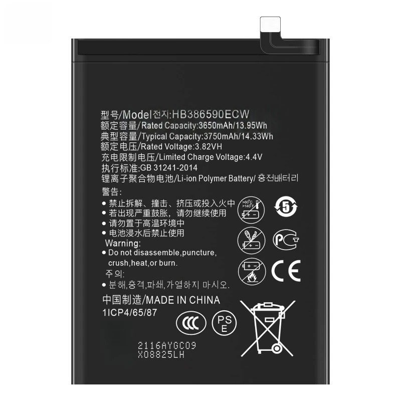 تمتاز بطارية HB386590ECW بتوازن مثالي بين الحجم والسعة، وقد صُممت لتناسب جيل الهواتف التي بدأت في اعتماد التصميمات النحيفة مع الحفاظ على أداء طاقة مستقر. إليك التفاصيل التقنية الدقيقة لهذه البطارية: