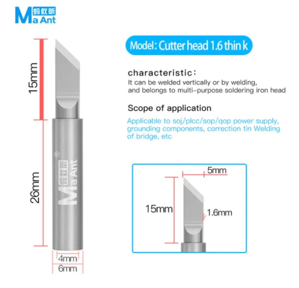 يعتبر رأس MaAnt 936 بتصميم “السكين” (K-Tip) الأداة الأكثر تنوعاً واحترافية لأي فني صيانة إلكترونيات، حيث يجمع بين المساحة الكافية لتسخين المكونات المتوسطة والدقة الحادة للتعامل مع المسارات المجهرية. صُمم هذا الرأس ليكون “اليد اليمنى” للفنيين في أعمال الميكرو-سولدرينج، بفضل قدرته الفائقة على التحكم في تدفق الحرارة والقصدير.