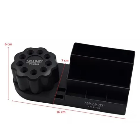 قاعدة YX-2302 (المعروفة بـ Magnetic Rotary Storage Rack) الحل المثالي لمشكلة “فوضى البراغي والأدوات” التي تواجه كل فني محترف. في أي ورشة تحتوي على أدوات دقيقة تصبح عملية التنظيم هي الفارق بين صيانة ناجحة وضياع برغي مجهري قد يسبب مشكلة كبيرة.