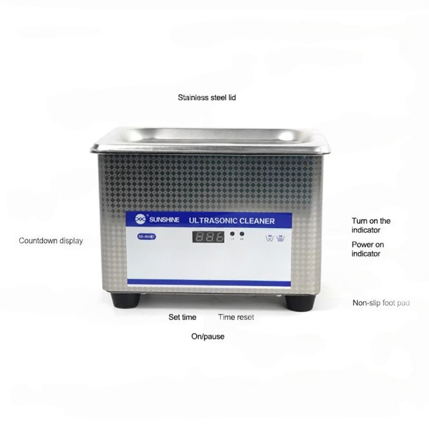غسالة البوردات Sunshine SS-6508T (جهاز التنظيف بالأمواج فوق الصوتية – Ultrasonic Cleaner) “المستشفى” الخاص بالبوردات التي تعرضت للسوائل أو الرطوبة العالية في ورشتك. بما أنك تتعامل مع أجهزة دقيقة مثل iPhone  وأجهزة Samsung، فإن هذه الغسالة هي الأداة الوحيدة القادرة على تنظيف الأملاح والتكلسات من تحت الأي سيهات (ICs) التي لا تصل إليها الفرشاة التقليدية.