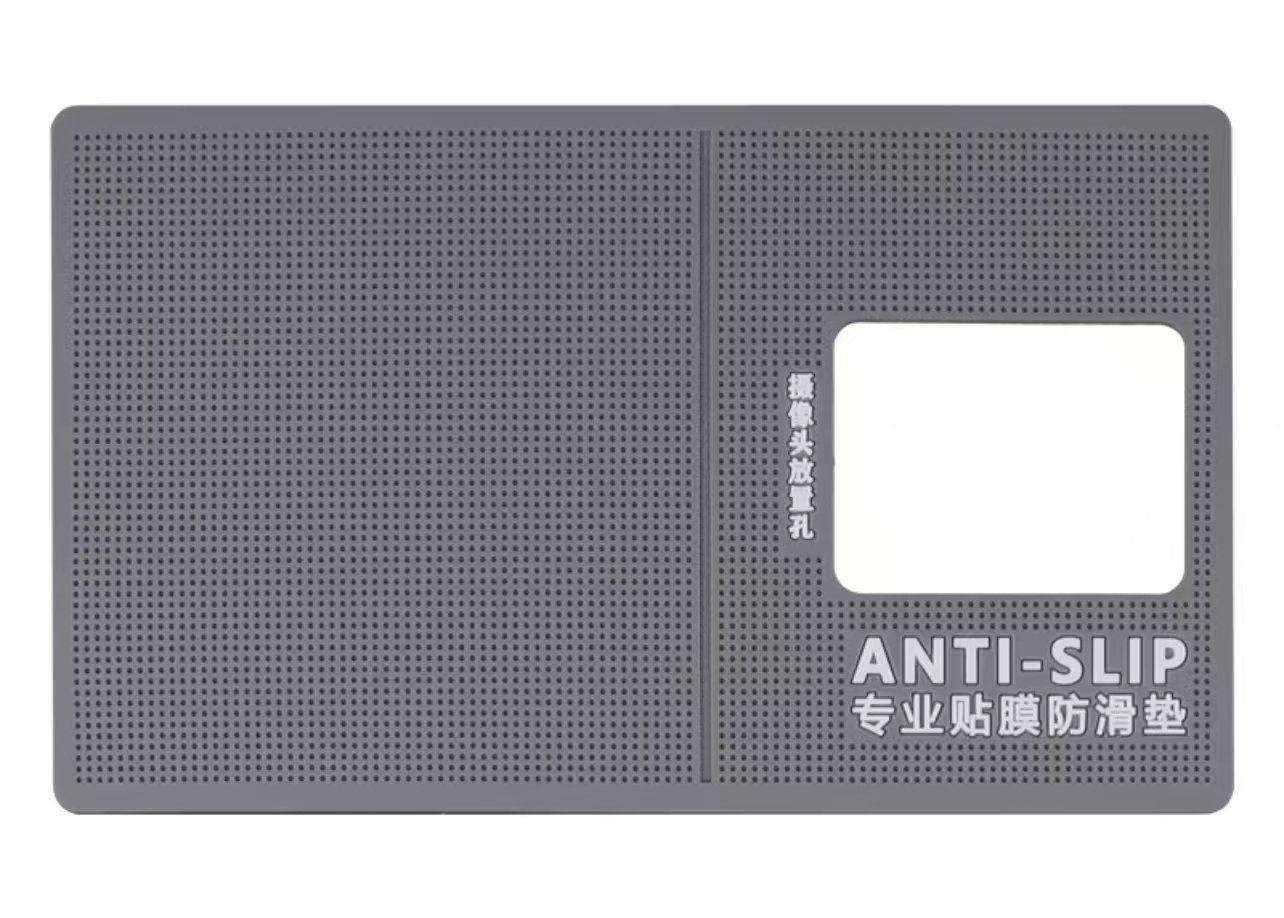 وسادة سيليكون مضادة للانزلاق (Professional Silicone Anti-slip Pad) مخصصة لمحترفي صيانة الهواتف المحمولة، وتحديداً لعملية تركيب شاشات الحماية (Films/Screen Protectors) بدقة.