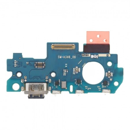 تأتي وحدة الشحن في جهاز A34 5G كلوحة إلكترونية فرعية (Sub-Board) صلبة. في هذا الموديل، قامت سامسونج بإلغاء منفذ السماعات الـ 3.5mm، مما جعل البوردة أصغر حجماً وأكثر تركيزاً على نقل البيانات والطاقة.