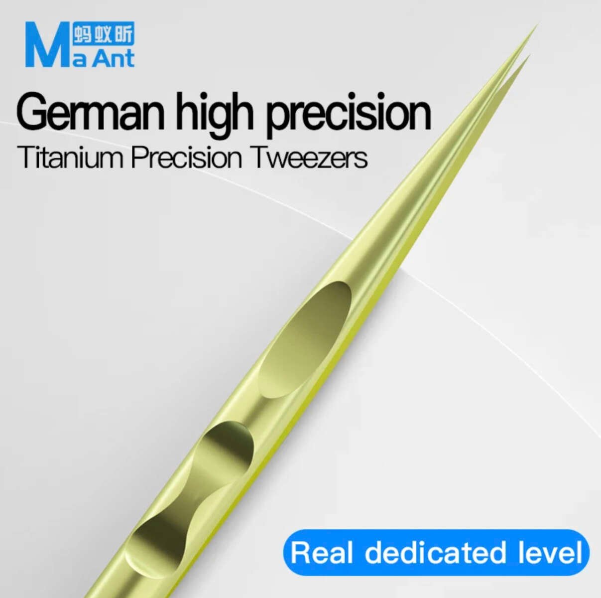 في عالم إصلاح اللوحات الإلكترونية الدقيقة، لا يكفي أن تكون الأداة دقيقة فحسب، بل يجب أن تكون “متحررة” من العوامل التي تعيق العمل. ملقط MaAnt TA-1 المصنوع من سبيكة التيتانيوم يضع بين يديك مزيجاً نادراً من الصلابة، وخفة الوزن، والمقاومة المطلقة للمغناطيسية، ليكون رفيقك الأبدي في أصعب عمليات الإصلاح.