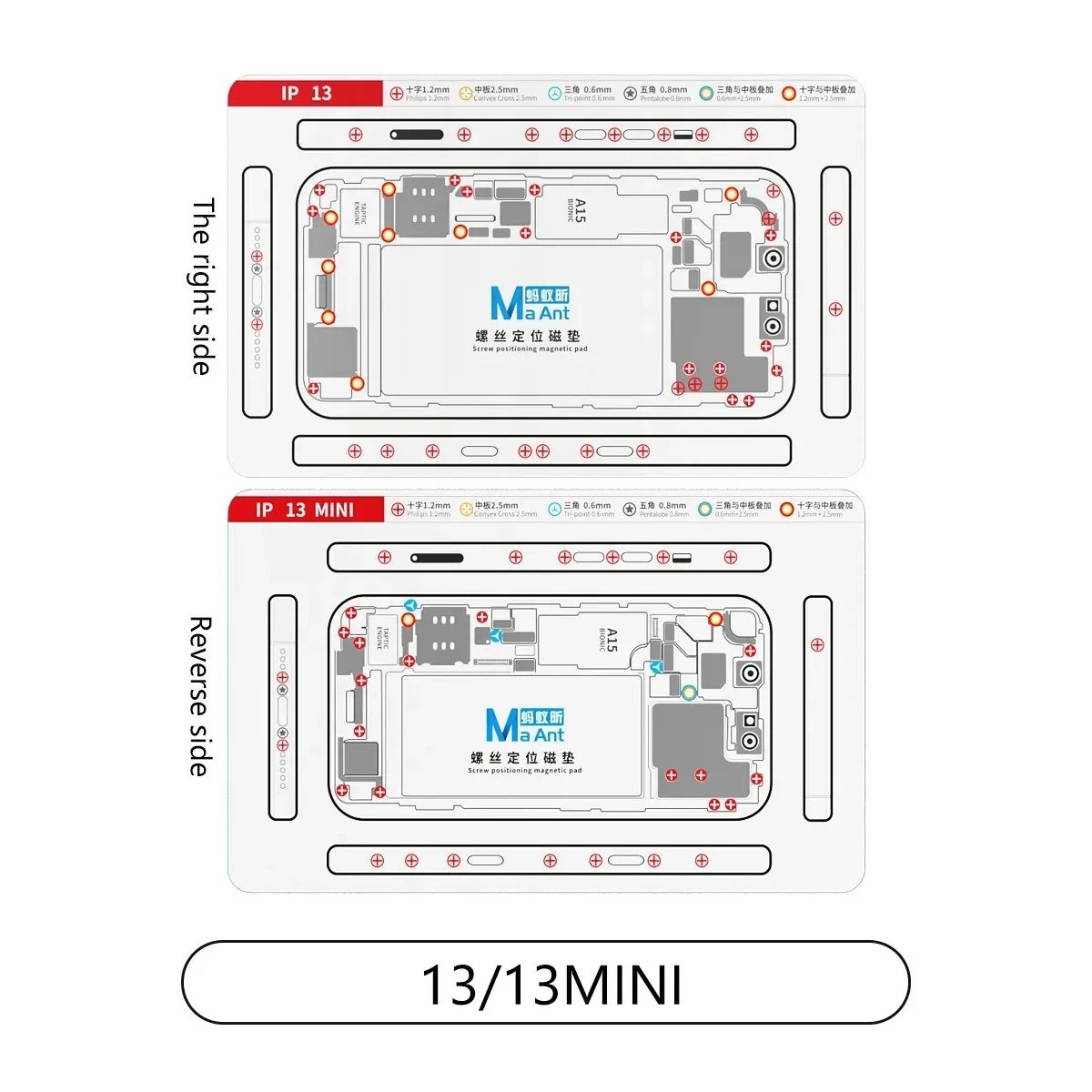 هذه منظومة تنظيمية متكاملة لأجهزة iPhone 13 و iPhone 13 Mini. هذه السلسلة من أجهزة أبل جاءت بتصميم داخلي أعاد ترتيب أولويات توزيع المكونات بشكل أكبر، مما يجعل هذه اللوحات المغناطيسية من MaAnt ليست مجرد أداة مساعدة، بل هي المرجع الأساسي لتجنب “كوارث البراغي”.