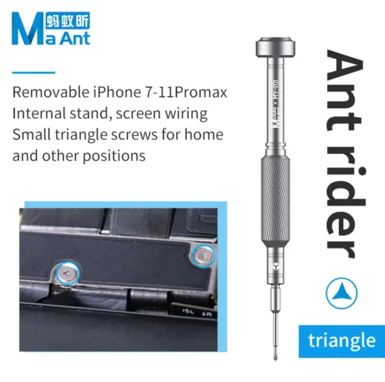 هذا المفك مصمم برأس Tri-point (Y-type) بمقاس 0.6mm. في أجهزة الآيفون من iPhone 7 وحتى iPhone 15 Pro Max، هذا هو “مفتاح السر”؛ حيث تعتمد أبل في معظم شيلدات (Shields) البوردة، والشاشة، والبطارية على هذه البراغي الثلاثية الأطراف.