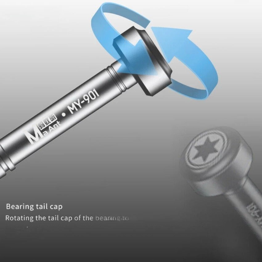 الأمان الميكانيكي: بما أنك تعمل على بوردات أجهزة غالية الثمن (مثل الـ 14 Pro و 15 Pro)، فإن أي انزلاق للمفك قد يخدش المكونات المحيطة (مثل المكثفات المجهرية). التصميم النحيف لمفك MY-901 يمنحك رؤية كاملة لنقطة التلامس، مما يجعله آمناً تماماً.