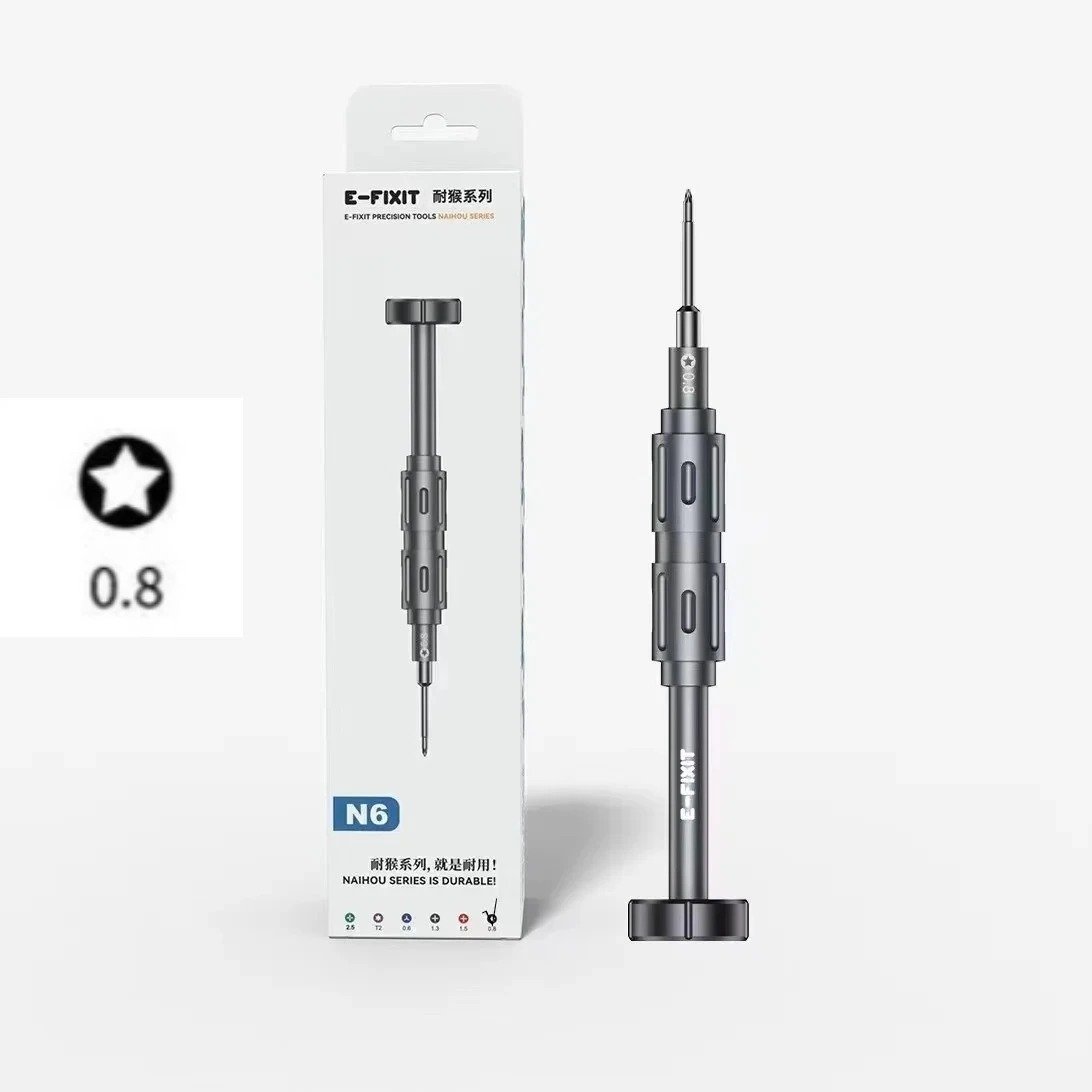 مفك E-FIXIT N6 High Precision بمقاس 0.8 (Pentalobe) أداة متخصصة وعالية الدقة، وهو مصمم خصيصاً للتعامل مع البراغي السفلية لأجهزة الأيفون (البرغيين بجانب مدخل الشحن).