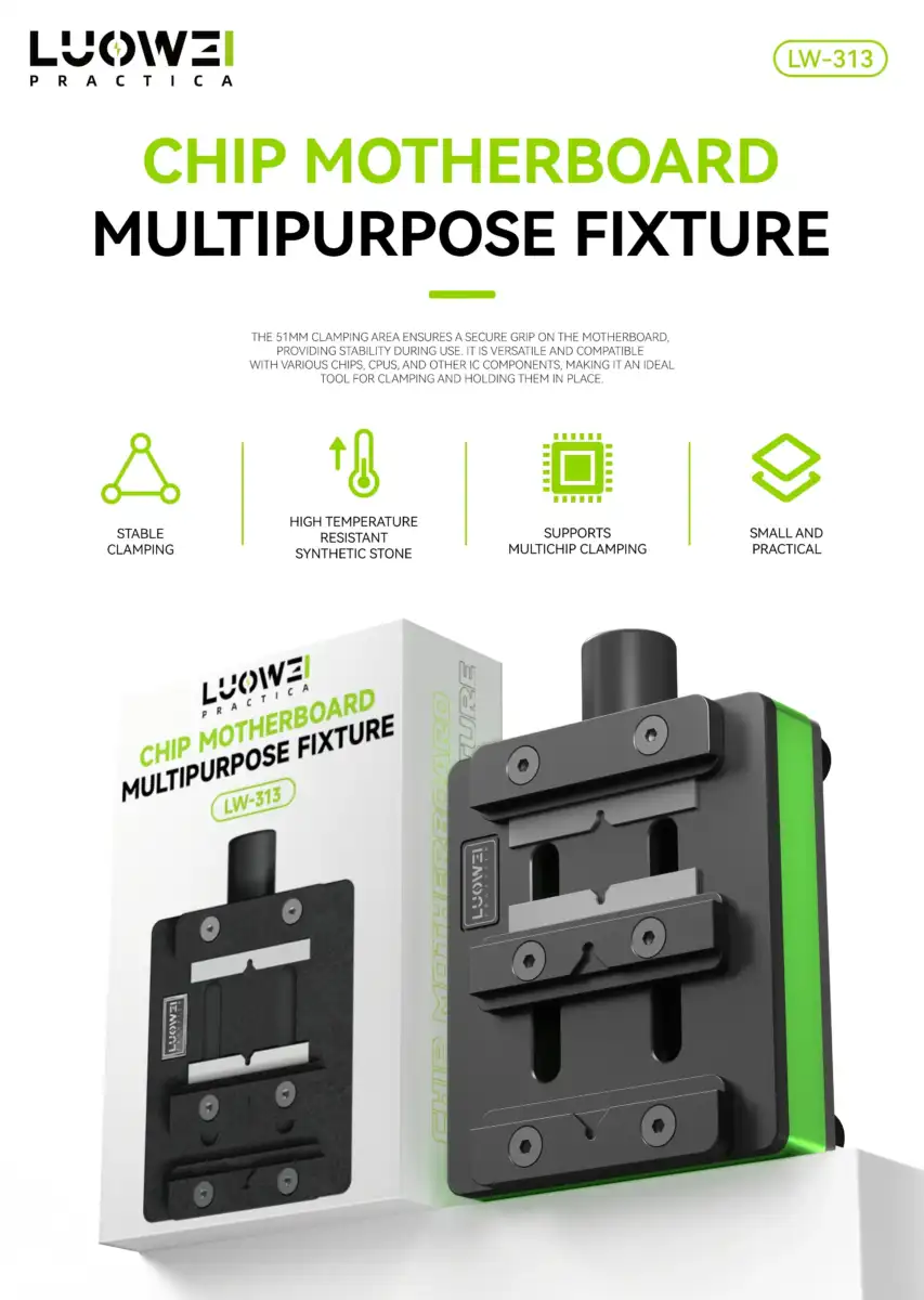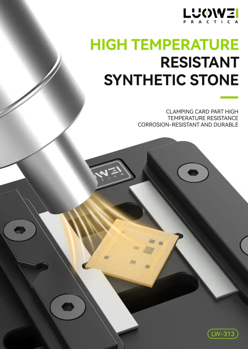 مع شبلونات سامسونج UFO: توفر LW-313 استواءً تاماً لسطح البوردة، مما يجعل وضع الشبلونة فوق الأي سي عملية دقيقة جداً خالية من الاهتزازات التي قد تفسد كرات القصدير.