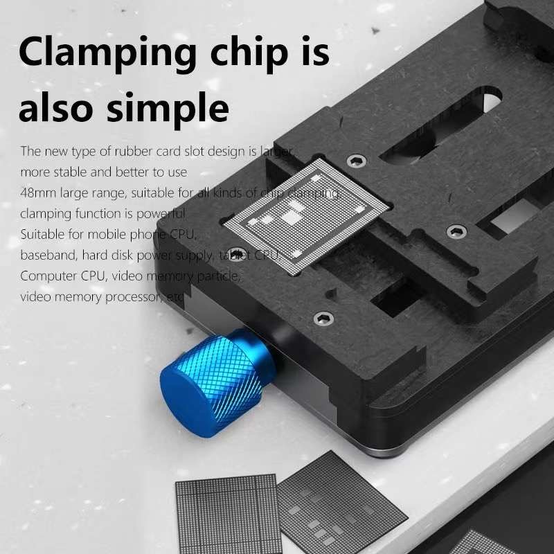التوافق: “Universal” (عالمية)؛ أي أنها مصممة لإمساك بوردات الآيفون والأندرويد بمختلف أشكالها، بالإضافة إلى أماكن مخصصة لتثبيت الآيسيات (IC Chip Repair).