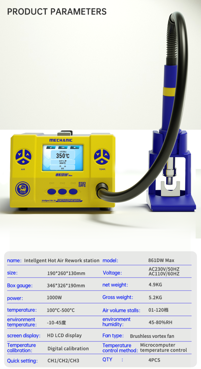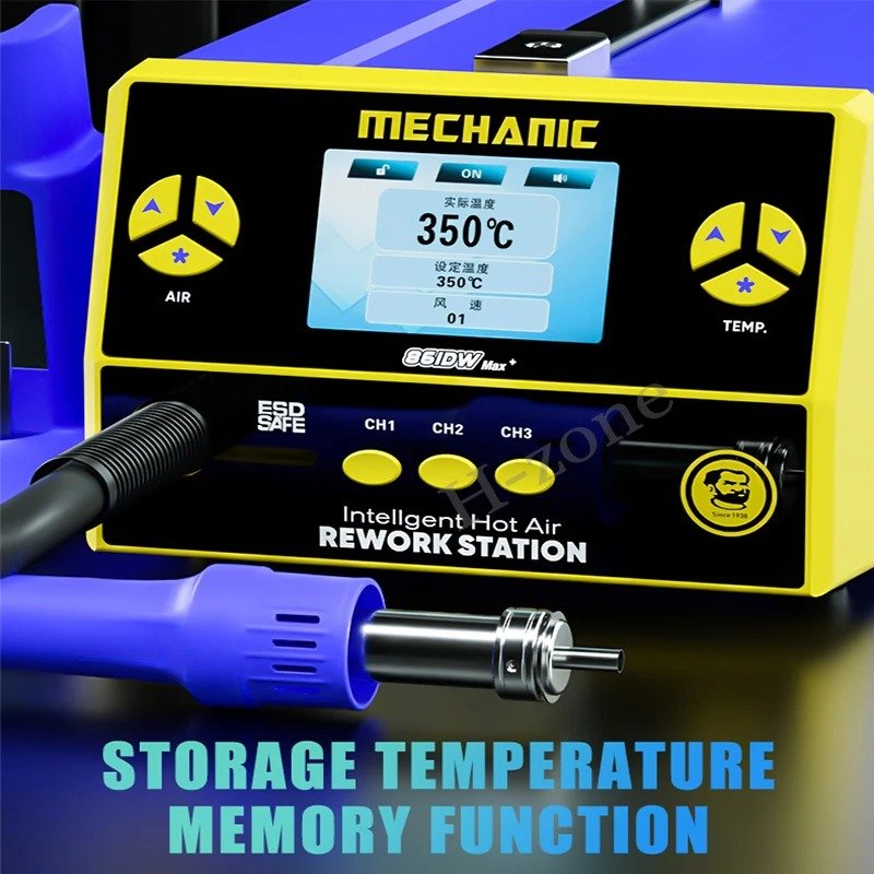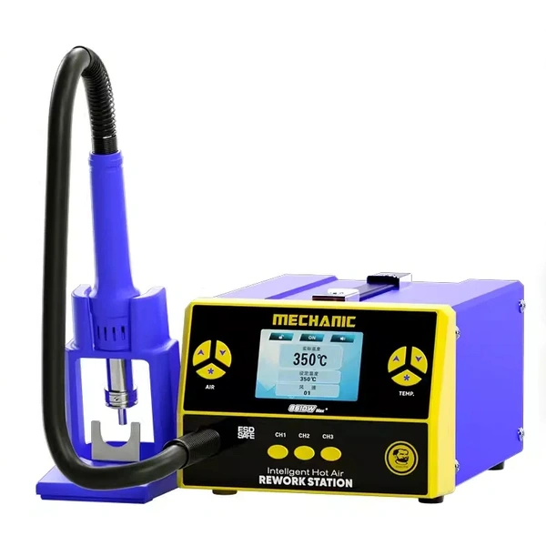 تعتبر محطة MECHANIC 861DW MAX المزدوجة (Hot Air + Soldering Iron) الوحش الحقيقي في ورشتك، فهي ليست مجرد أداة عادية، بل هي محطة صيانة متكاملة بقدرة 1000 واط، مصممة خصيصاً للتعامل مع اللوحات الأم (Motherboards) المعقدة .