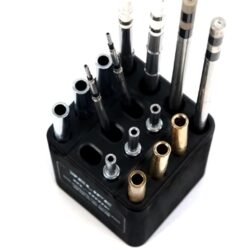 تنظيم ذكي (Multi-Functional Storage): بالإضافة إلى رؤوس الكاوي، توفر مساحات إضافية لتنظيم المفكات، الملاقط (Tweezers)، ومسدسات الفلكس (مثل RL-062)، مما يجعل طاولة عملك تبدو وكأنها طاولة “جراح” وليس مجرد ورشة صيانة.