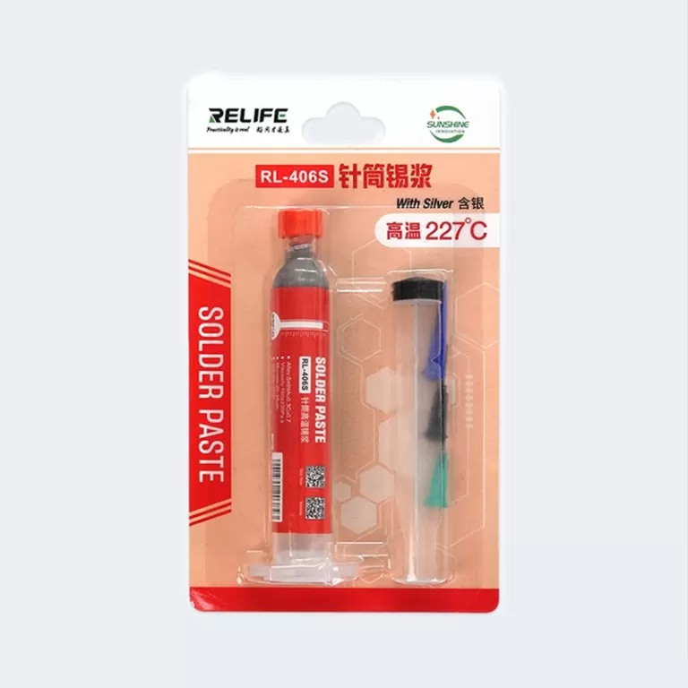 أن معجون RELIFE RL-406S بدرجة انصهار 227°C هو “قصدير المهام الصعبة”. هذا المعجون خالٍ من الرصاص (Lead-Free) ويأتي بتركيبة مخصصة للأماكن التي تتطلب صلابة ميكانيكية استثنائية وتحمل حراري عالٍ جداً.
