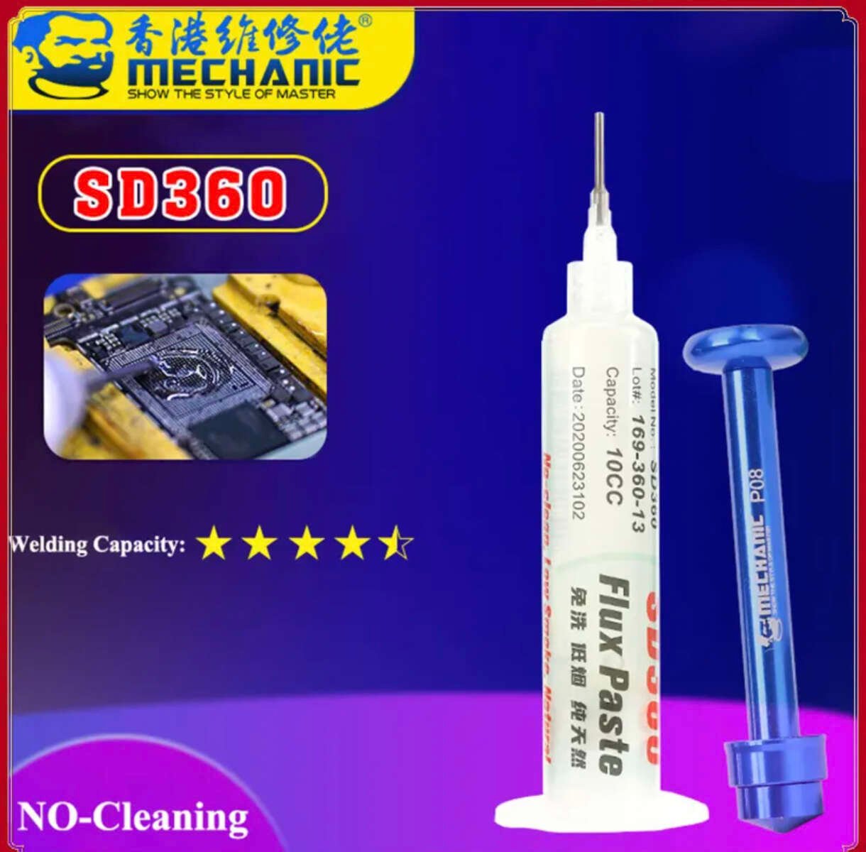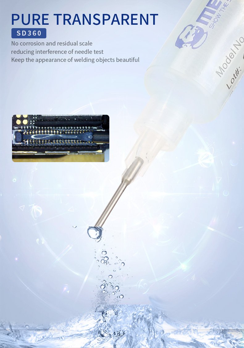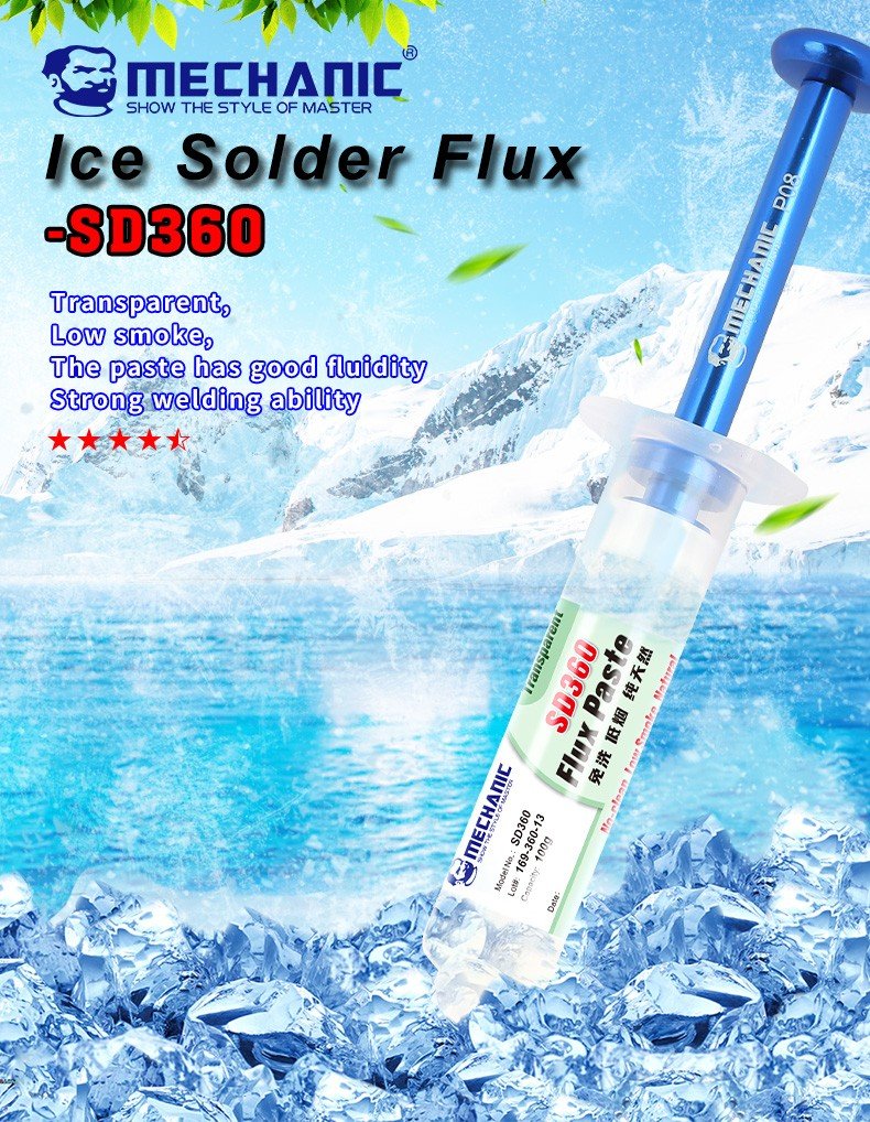 معجون Mechanic SD360 (المعروف بـ Transparent Flux) من أفضل أنواع الفلكس التي يفضلها فنيو الصيانة المتقدمة، خاصة عند العمل على بوردات الايفون المزدوجة ؛ هذا الفلكس هو “المايسترو” الذي يضمن لك جودة لحام مجهرية.