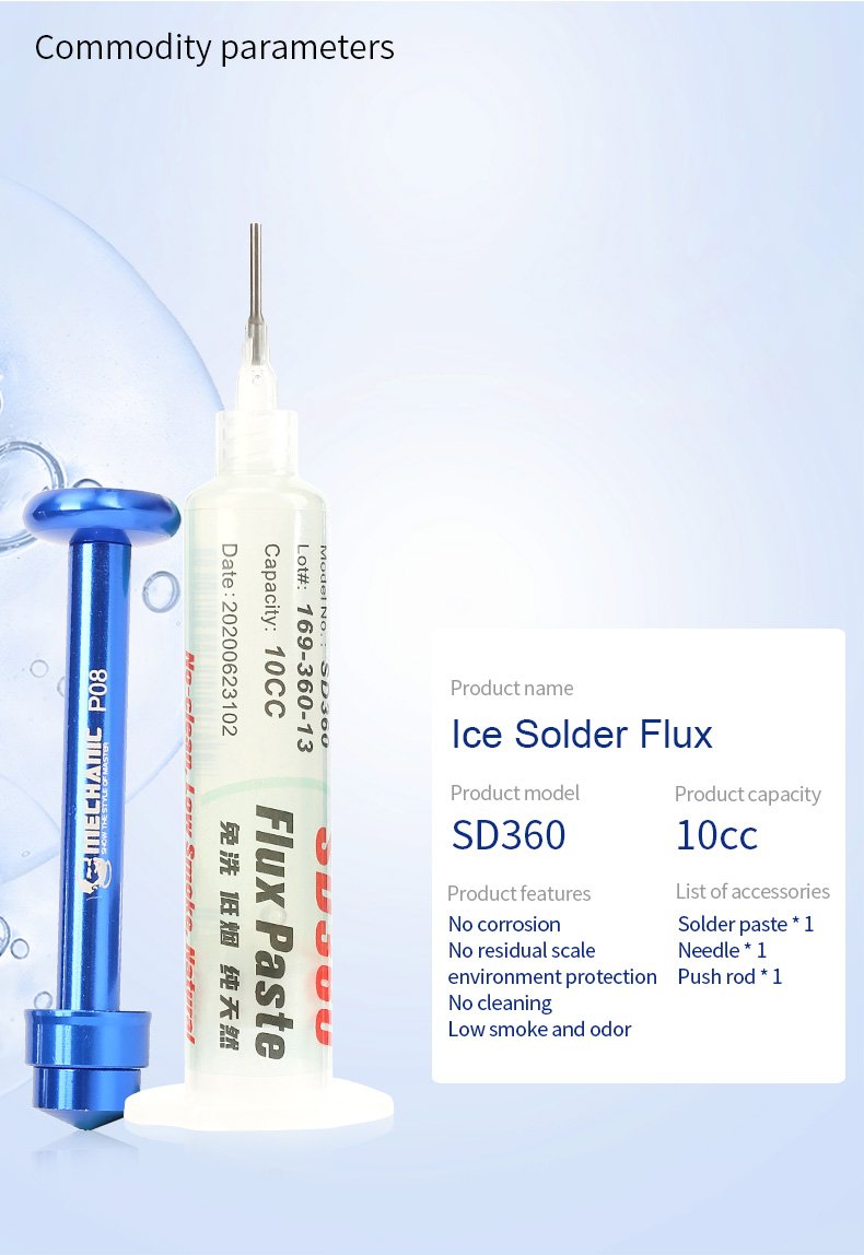 2. تكوين كرات القصدير: عند صب القصدير ، يساعد SD360 حبات القصدير على أخذ شكل كروي مثالي والالتصاق بالرجل بسرعة، مما يمنع حدوث “تلامس” (Short) بين الأرجل المتقاربة.