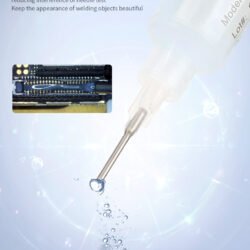• الشفافية العالية (High Transparency): يتميز بأنه شفاف تماماً ولا يترك أثراً “محروقاً” أو غامقاً على البوردة، مما يسهل عليك رؤية أرجل الأي سي (Pads) بوضوح تحت الميكروسكوب أثناء اللحام.