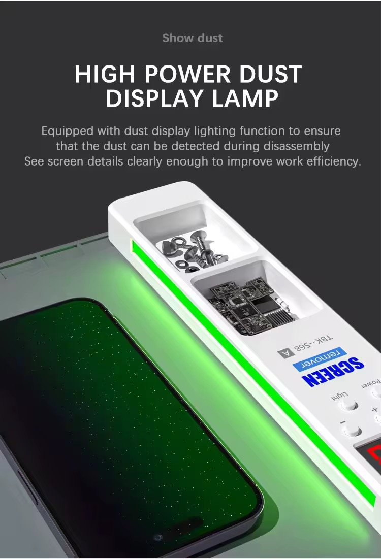* مصباح كشف الغبار (Dust Display Lamp): ميزة فريدة عبارة عن إضاءة LED خضراء قوية مدمجة تساعد الفني على رؤية ذرات الغبار والخدوش الدقيقة على الشاشة التي لا تُرى بالعين المجردة، لضمان نظافة عملية الإصلاح .