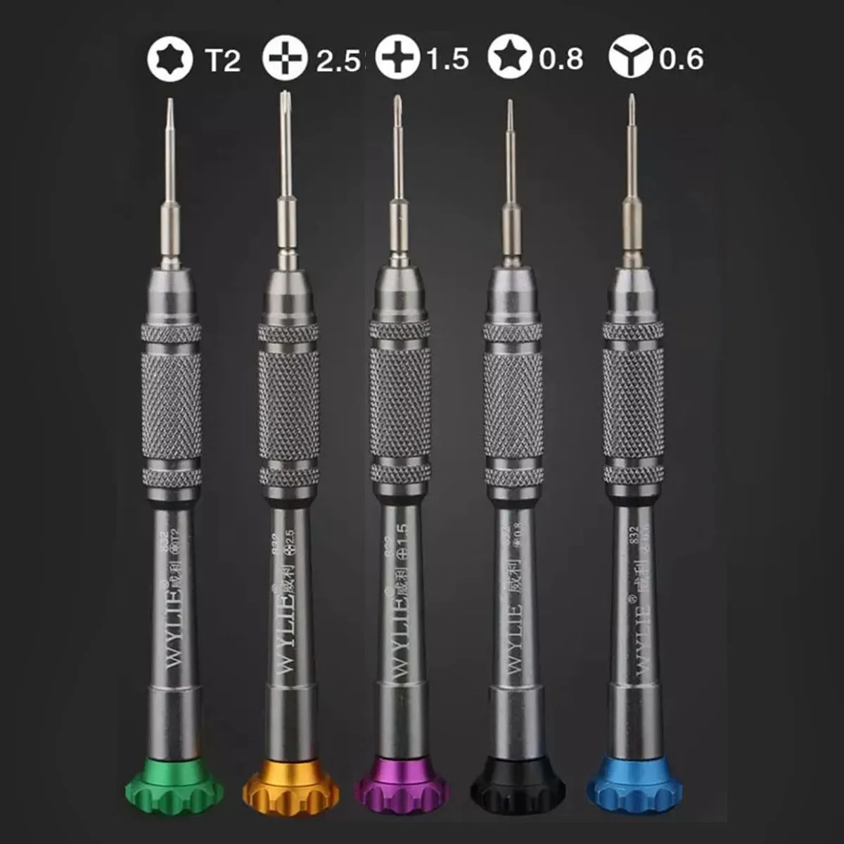 طقم مفكات WYLIE WL-832 (5 in 1) من الأدوات “الذكية” التي تجمع بين التصميم المريح وفلسفة توفير المساحة، وهو خيار ممتاز لفنيي المحمول الذين يفضلون وجود عدة مقاسات في أداة واحدة عالية الجودة.